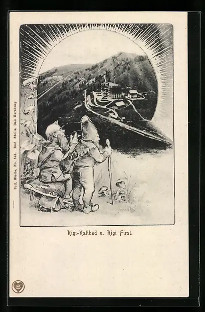 AK Rigi-Kaltbad, Blick zum Ort mit Rigi First, Zwerge