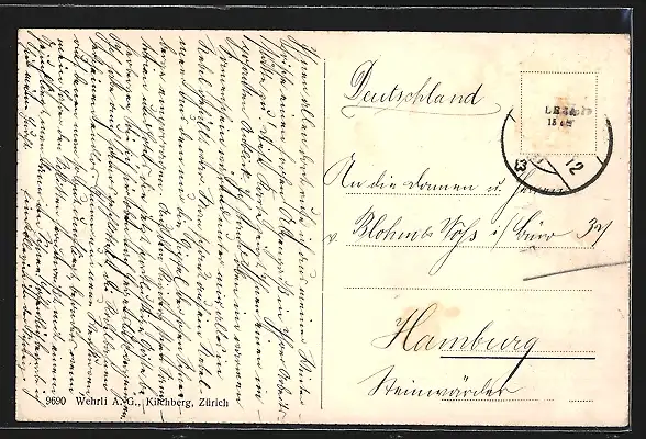 alte Ansichtskarte, gelaufen, Briefmarke entfernt, guter Zustand