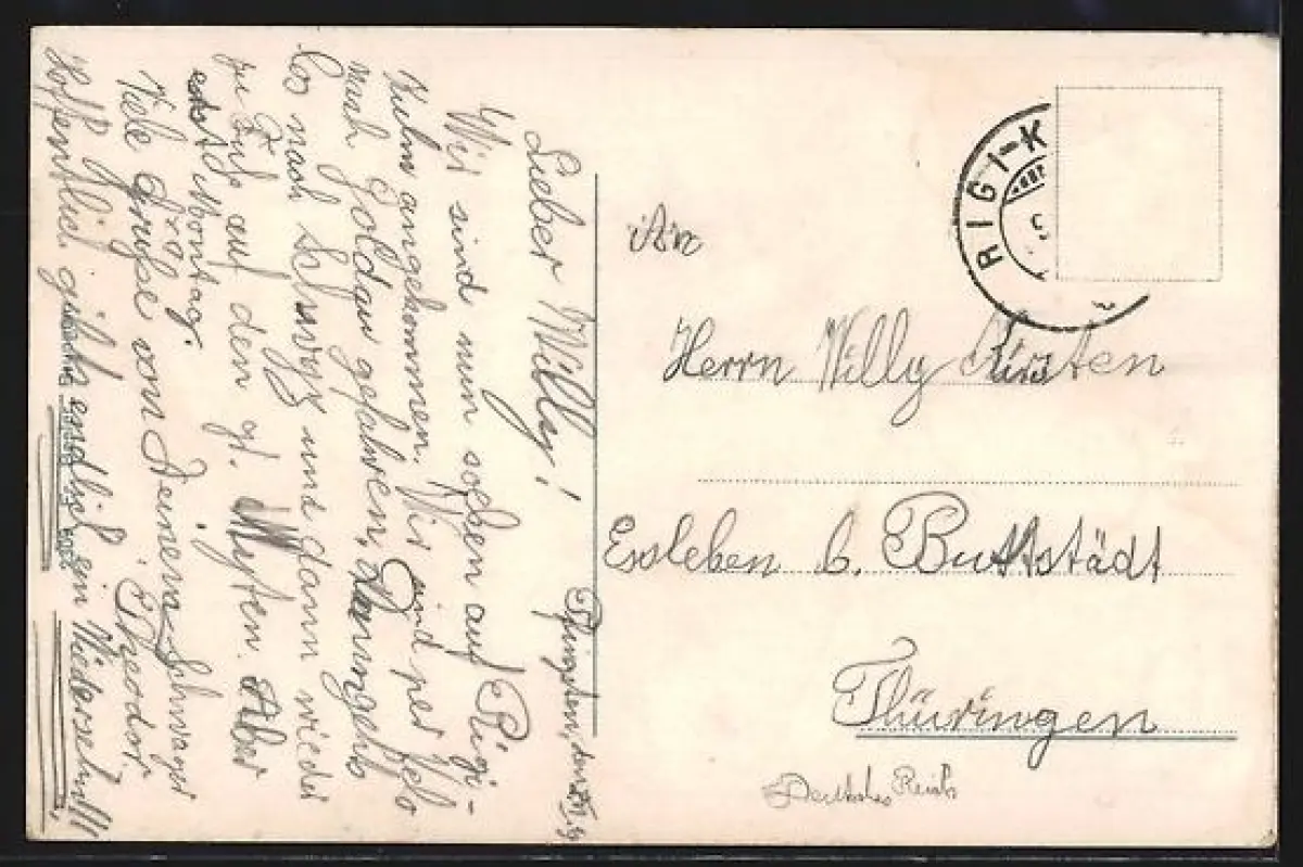 alte Ansichtskarte, gelaufen, Briefmarke entfernt, guter Zustand