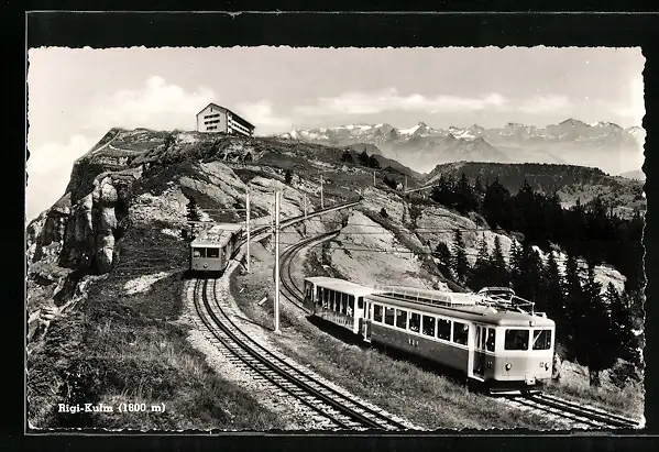 AK Rigi-Kulm, Panorama mit Bergbahn