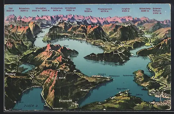 AK Rigi-Kulm, Totalansicht von Luzern bis in die Alpen aus der Vogelschau