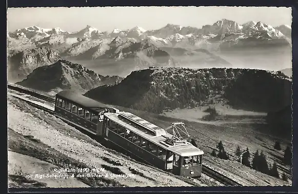 AK Rigi Kulm mit Rigi-Scheidegg u. den Glarner u. Unteralpen, Bergbahn