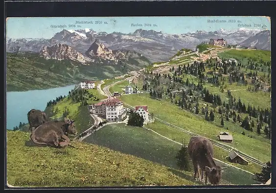 AK Rigi-Staffel, Ortsansicht mit Rigi-Kulm und Alpenpanorama
