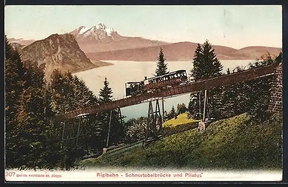 AK Rigibahn mit Schnurtobelbrücke, Pilatus