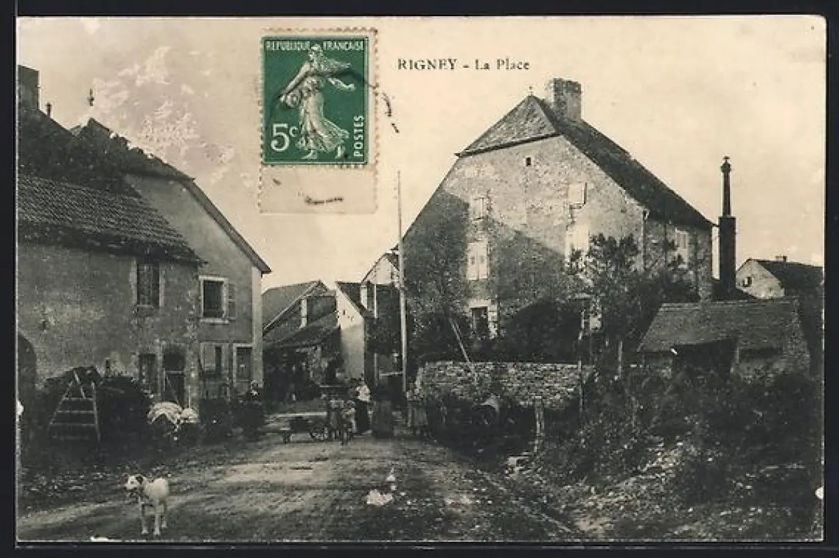 AK Rigney, La Place avec vue sur des bâtiments anciens et une rue animée