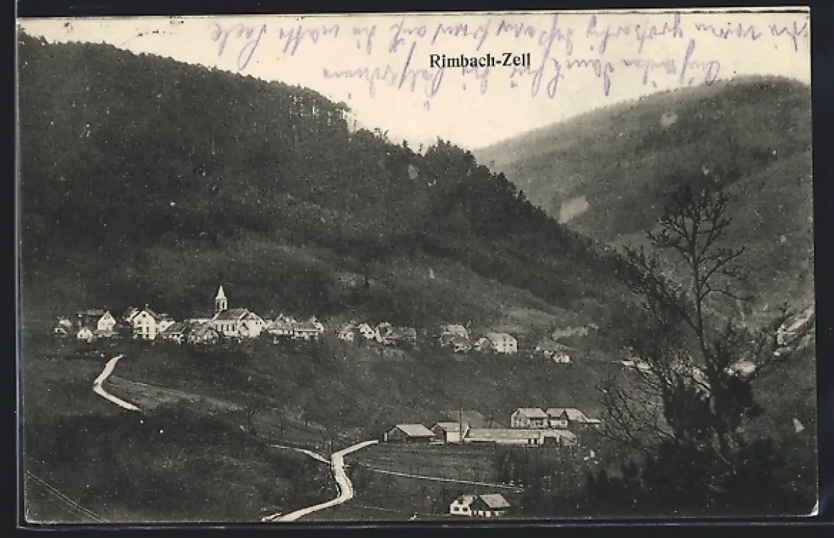 AK Rimbach-Zell, Vue du village entouré de collines boisées