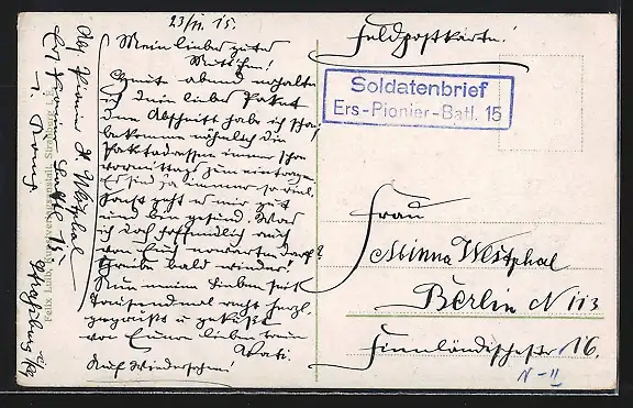 alte Ansichtskarte, gelaufen 1915, Eckknick re. unten, guter Zustand