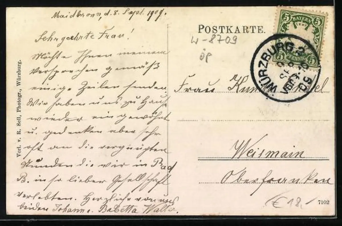 alte Ansichtskarte, gelaufen 1909, guter Zustand