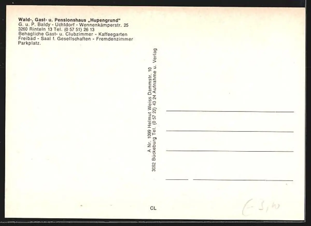 AK Rinteln, Gasthaus Hupengrund, Inh. G. u. P. Baldy-Uchtdorf, Wennenkämperstrasse 25