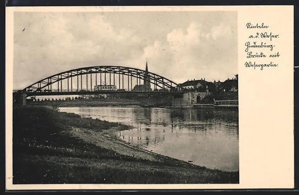 AK Rinteln a. d. Weser, Hindenburg-Brücke mit Weserpartie