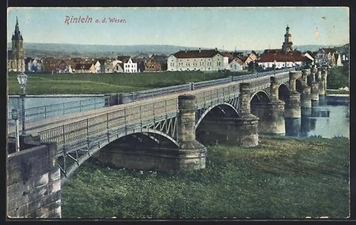 AK Rinteln, an der Brücke über die Weser in die Stadt