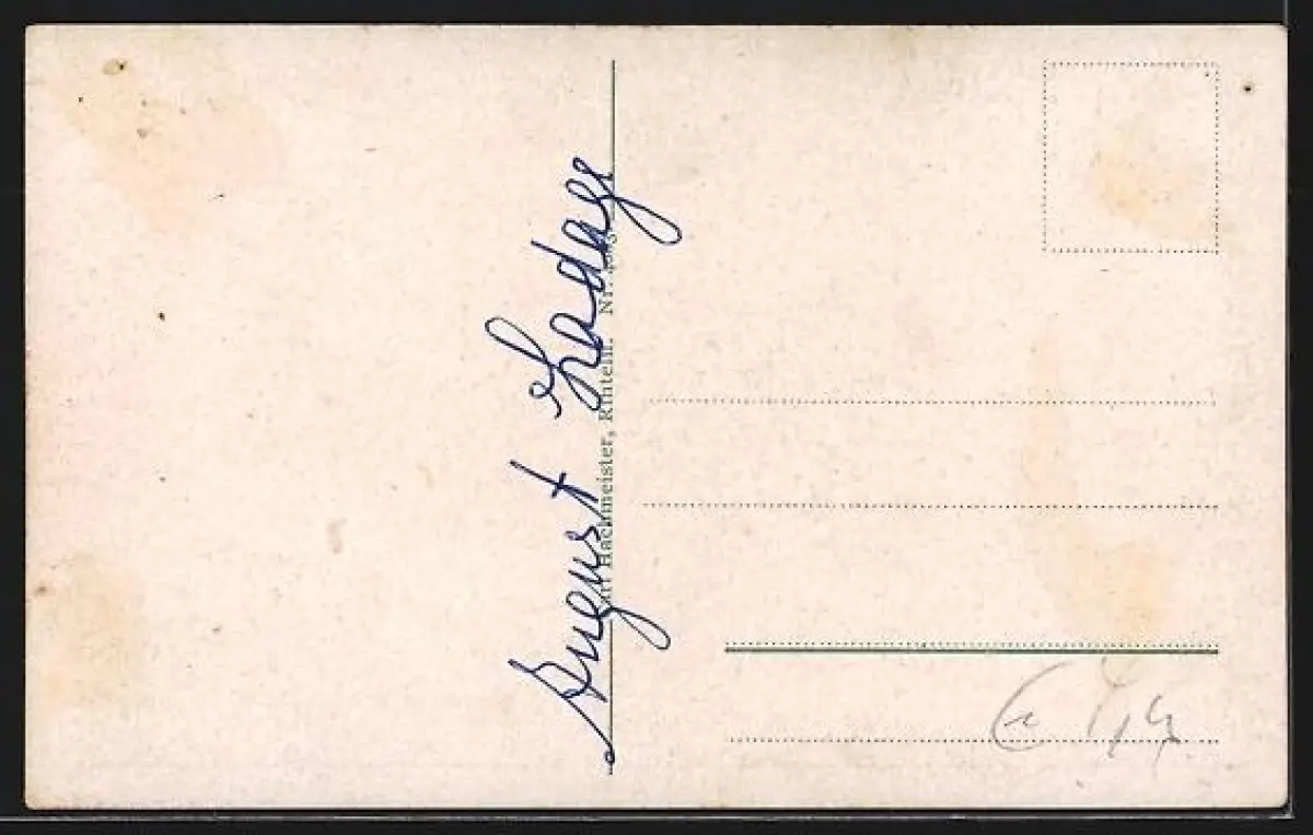 alte Ansichtskarte, ungelaufen, Stecknadellöcher in den oberen Ecken
