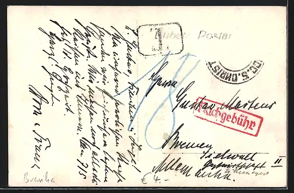 alte Ansichtskarte, gelaufen, Briefmarke entfernt, guter Zustand