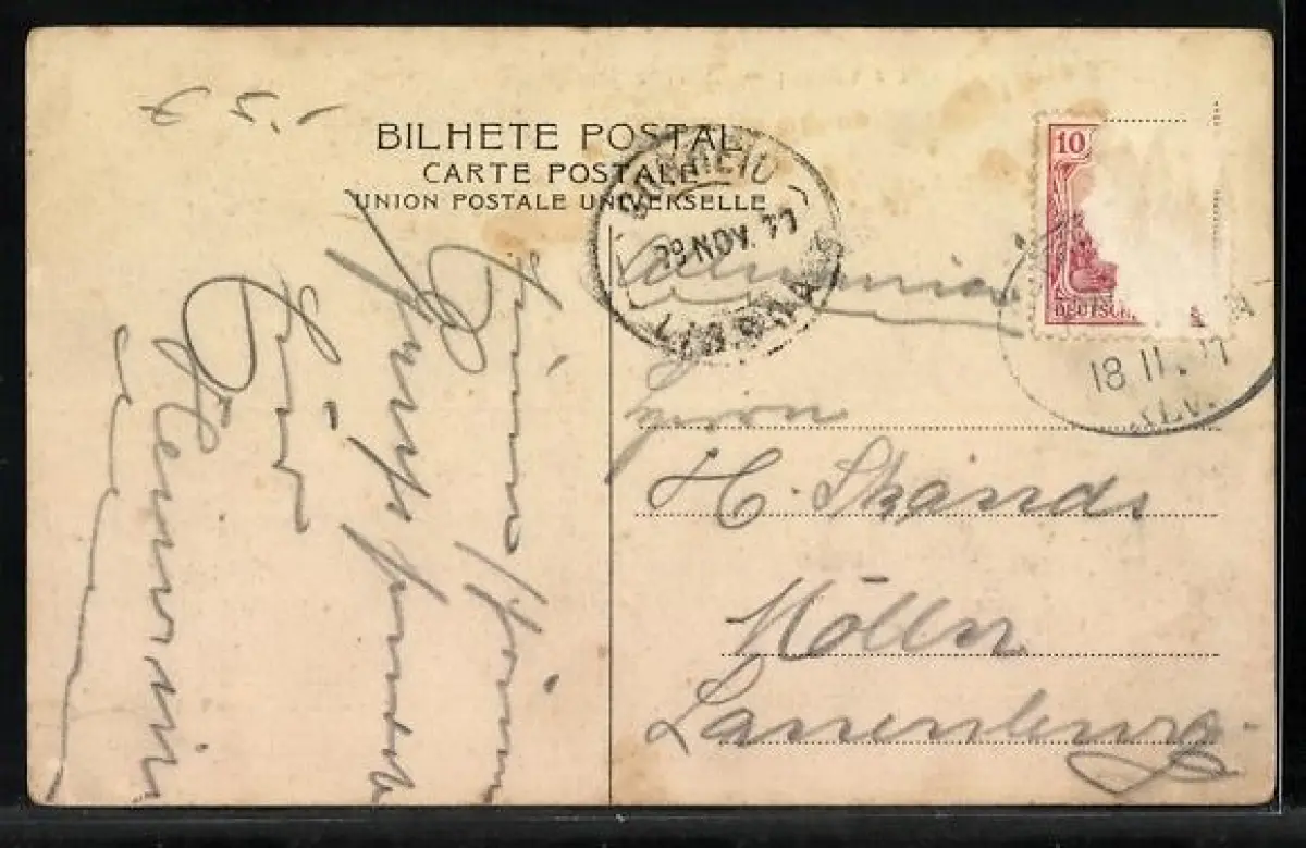 alte Ansichtskarte, gelaufen, Briefmarke entfernt, rückseitig Oberflächenschaden, guter Zustand