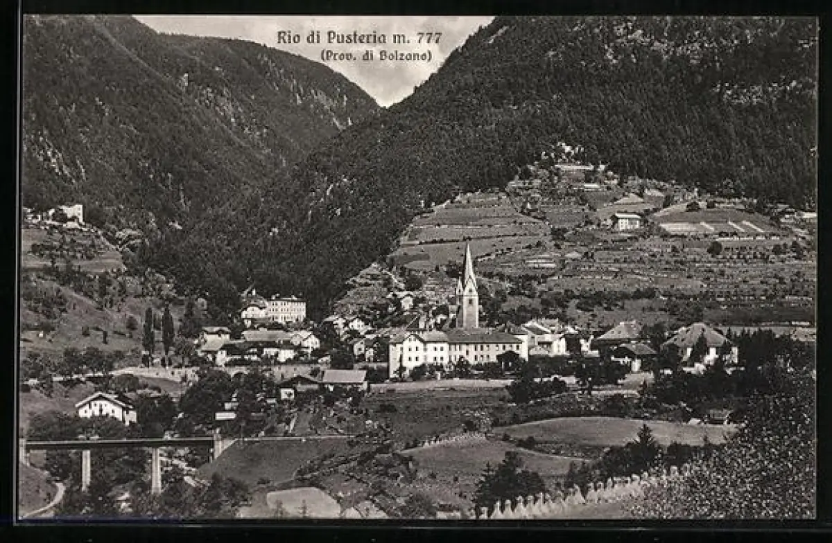 AK Rio di Pusteria /Bolzano, Panorama mit Kirche