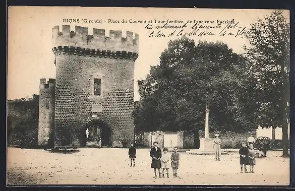 AK Rions, Place du Couvent et Tour fortifiée de l`ancienne Enceinte