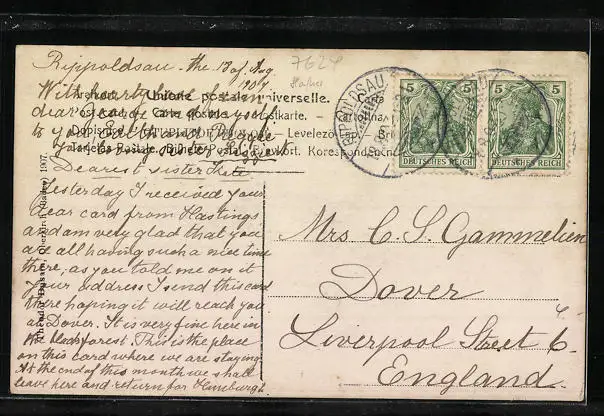 alte Ansichtskarte, gelaufen 1907, guter Zustand