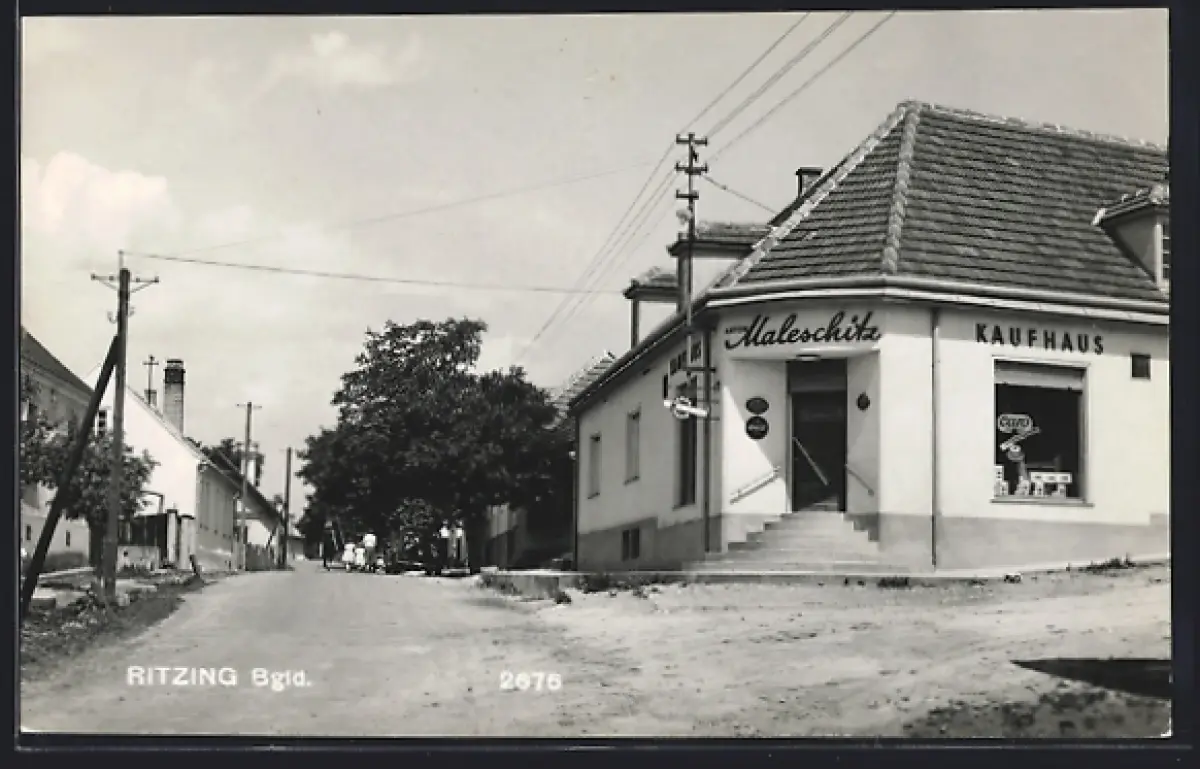 AK Ritzing, Strassenpartie am Kaufhaus von Anton Maleschitz