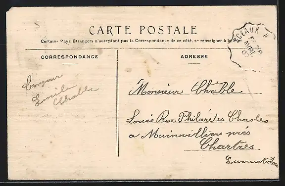 alte Ansichtskarte, gelaufen 1907, Eckknick oben rechts, Eckschaden re. oben