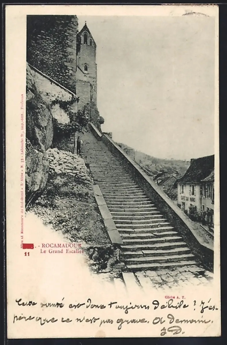 AK Rocamadour, Le Grand Escalier et l`église surplombant le village