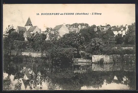 AK Rochefort-en-Terre, Vue de l`étang et du village