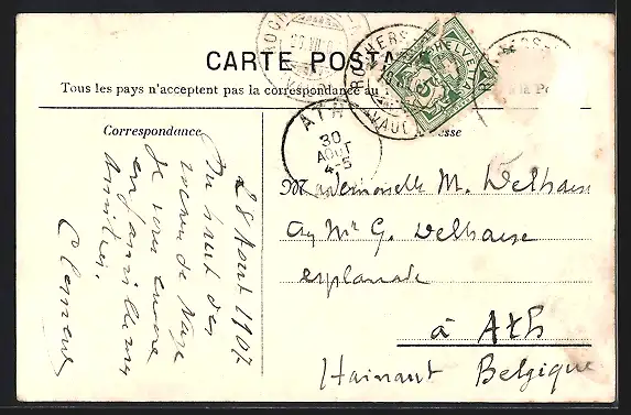 alte Ansichtskarte, gelaufen, Briefmarke entfernt, rückseitig Oberflächenschaden, Stempelspur, guter Zustand