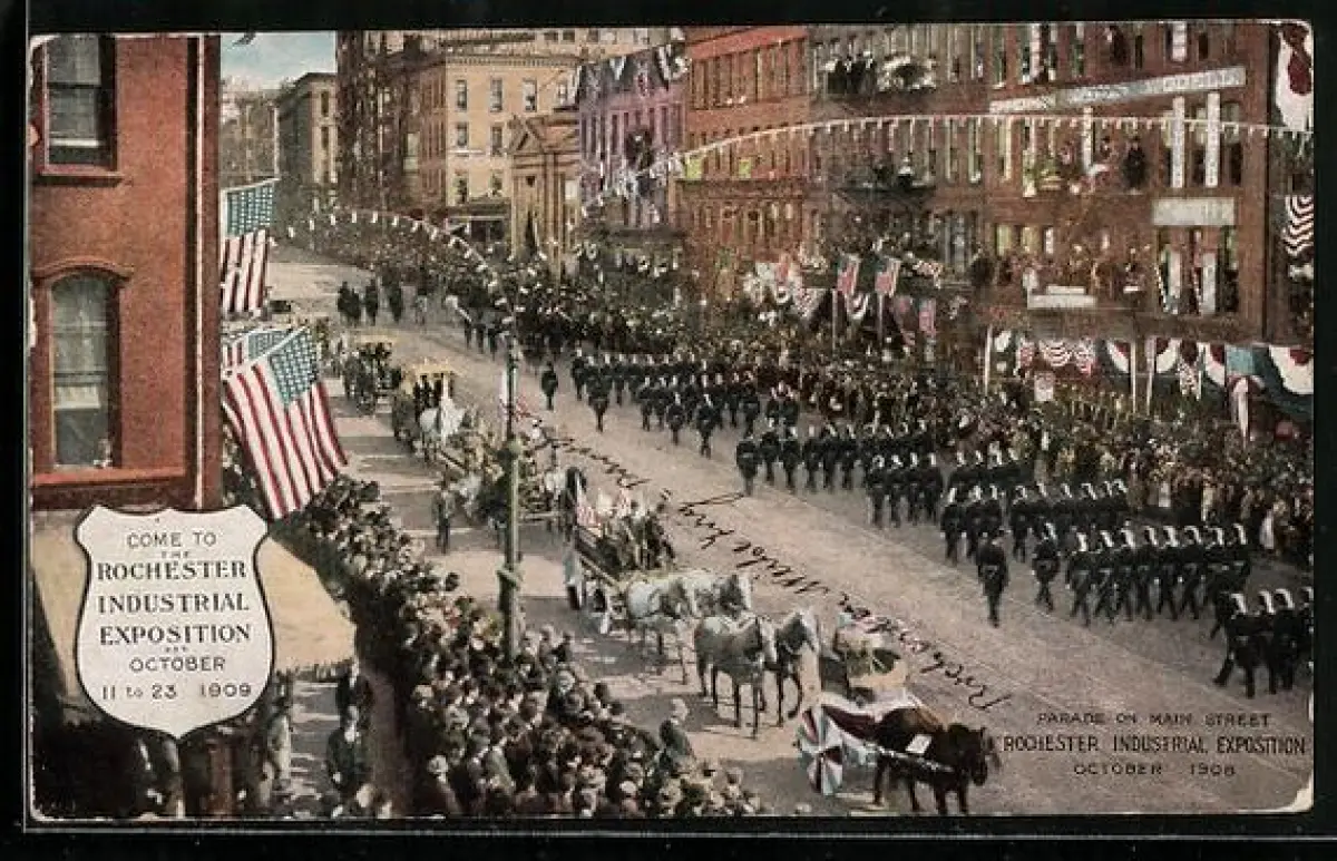 AK Rochester, NY, Rochester Industrial Exposition 1909, Parade on Main Street