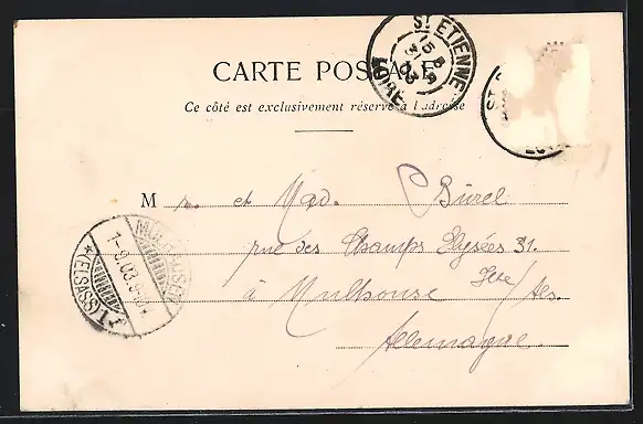alte Ansichtskarte, gelaufen 1903, Briefmarke entfernt, rückseitig Oberflächenschaden, Stempelspur, guter Zustand