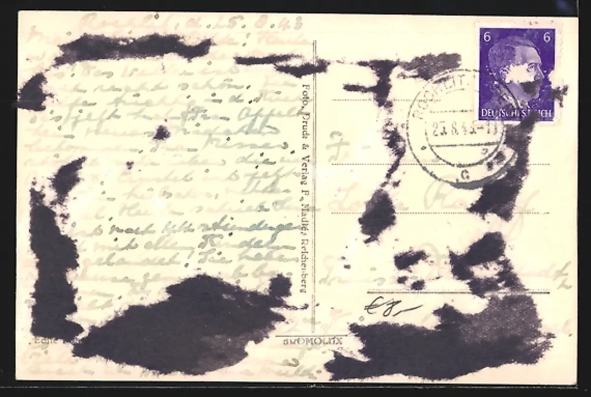 alte Ansichtskarte, gelaufen 1945, rückseitig Klebe- und Papierreste, guter Zustand