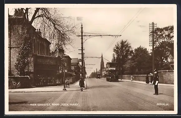 AK Rock Ferry, New Chester Road, Strassenbahn