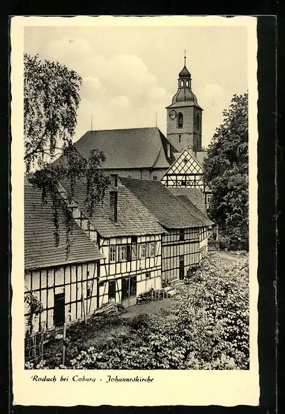 AK Rodach b. Coburg, Johanneskirche mit Fachwerkhäusern