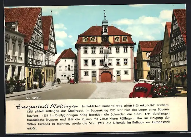 AK Röttingen /Tauber, Marktplatz mit Rathaus
