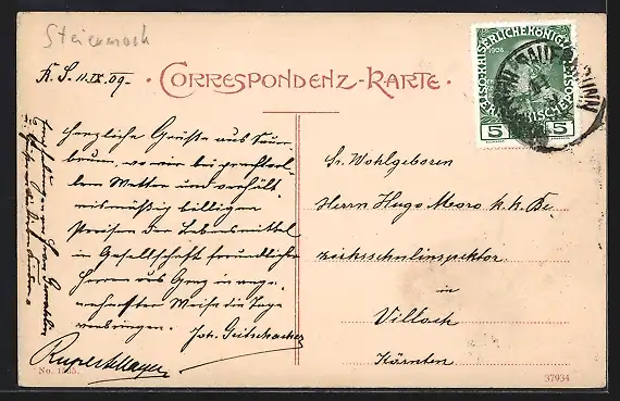 alte Ansichtskarte, gelaufen 1909, Stempelspur, guter Zustand
