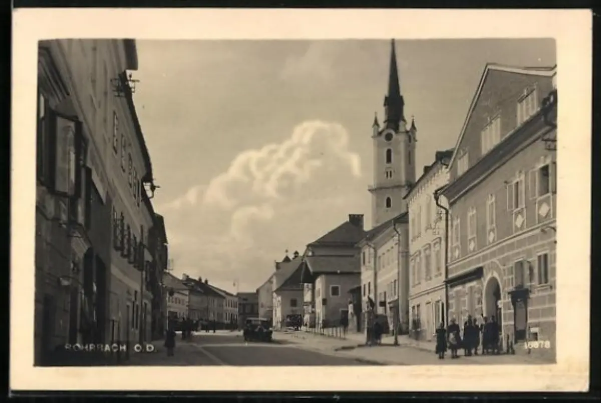 AK Rohrbach /O.D., Strassenpartie mit Kirchturm