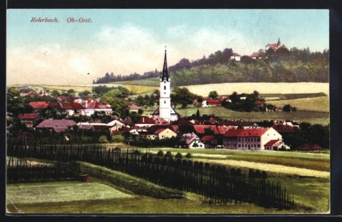 AK Rohrbach /Ob. Öst., Panorama mit Kirche