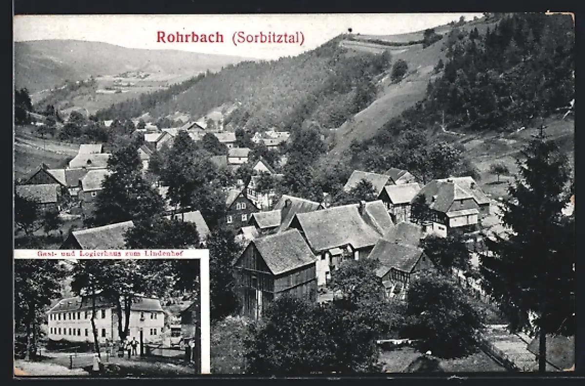 AK Rohrbach /Sorbitztal, Ortsansicht, Gasthaus und Logierhaus zum Lindenhof