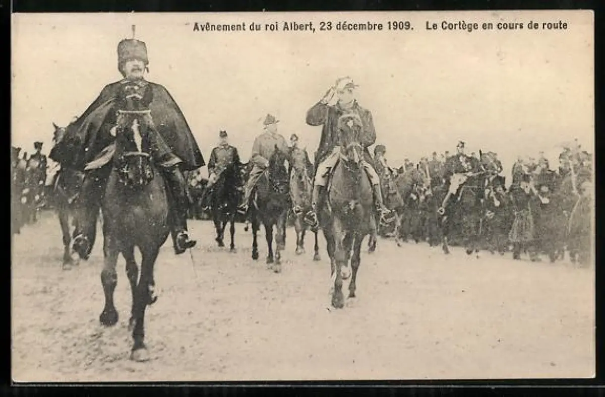 AK Roi Albert von Belgien, Avenement 23 decembre 1909, Le Cortege en cours de route