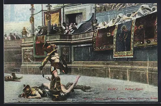 AK Roma, Anfiteatro detto Colosseo, blutiger Gladiatorenkampf im Colosseum