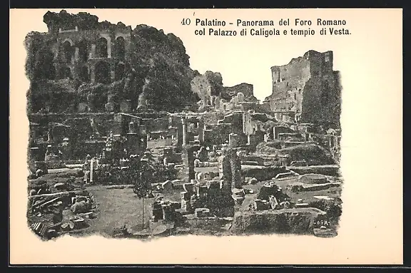 AK Roma, Panorama del Foro Romano col Palazzo di Caligola e tempio di Vesta