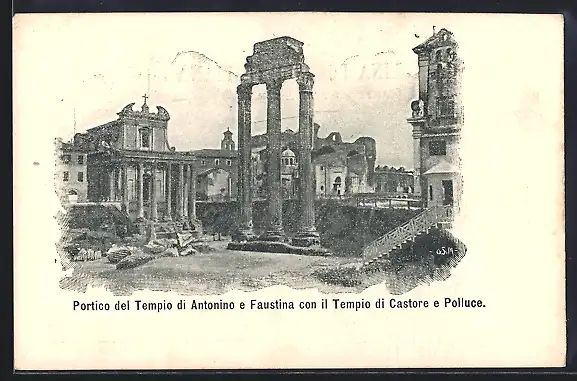 AK Roma, Portico del Tempio di Antonino e Faustina con il Tempio di Castore e Polluce