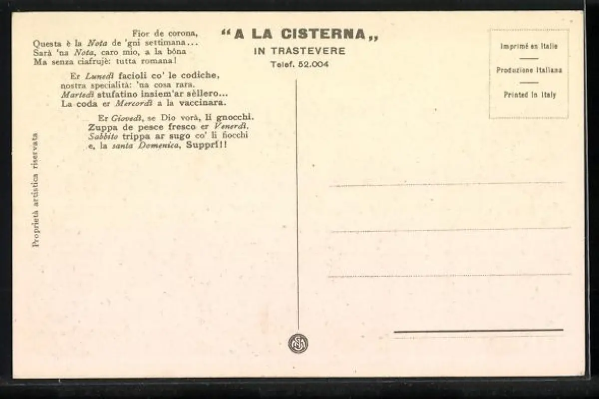 AK Roma, Ristorante A la Cisterna