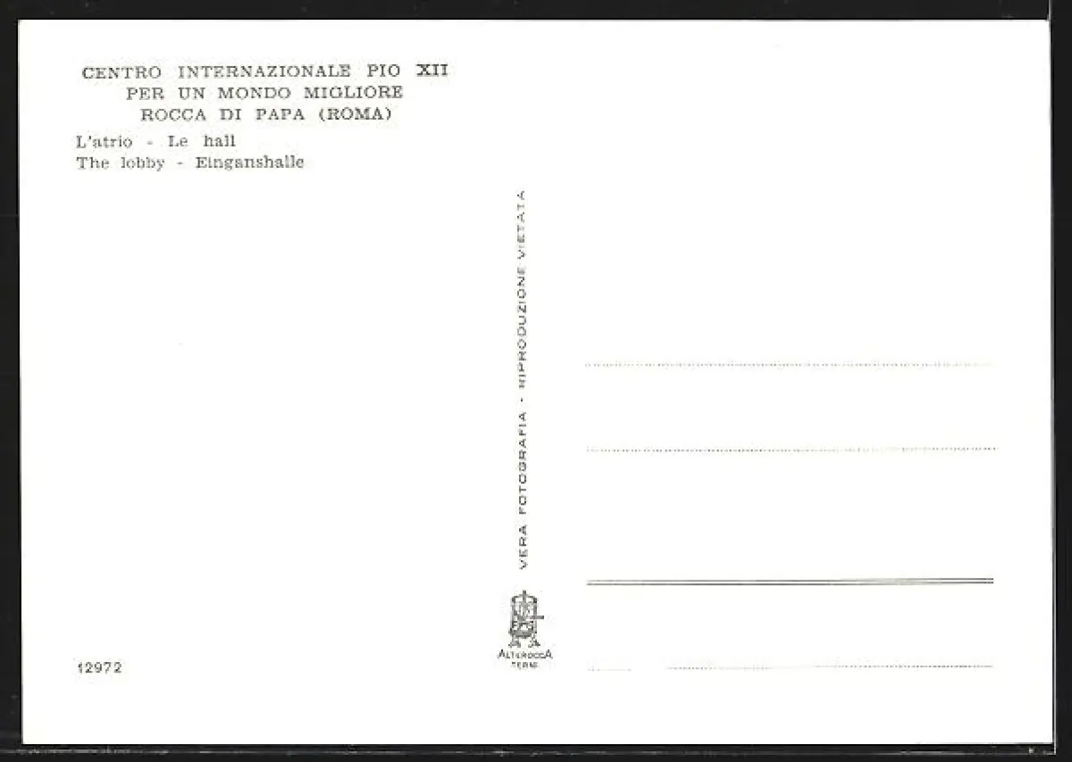 AK Roma, Rocca di Papa, Centro Internazionale Pio XII, L`atrio