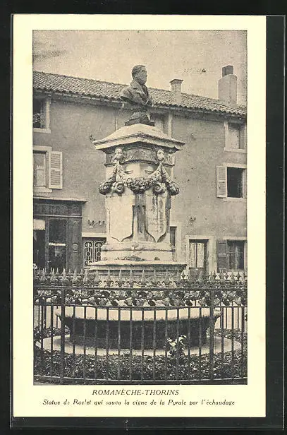 AK Romanèche-Thorins, Statue de Raclet qui sauva la vigne de la Pyrale par l`échaudage