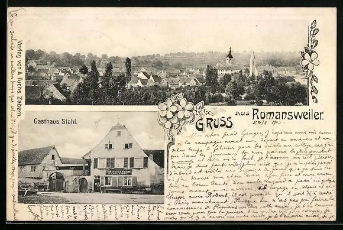AK Romansweiler, Gasthaus Stahl mit Ortsansicht
