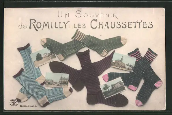 AK Romilly, Marktplatz mit Kirche, Feldpartie mit Gebäudeansicht, Ansicht durch Socken