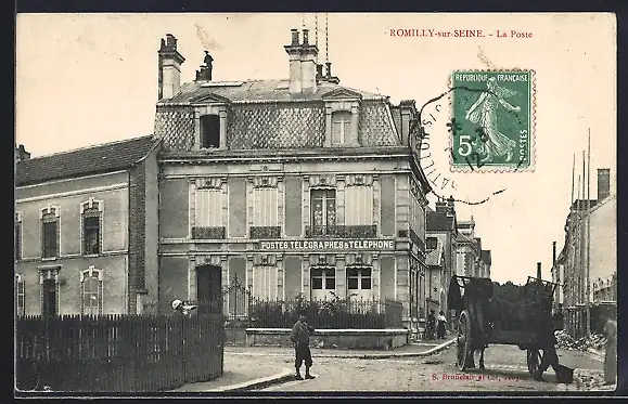 AK Romilly-sur-Seine, La Poste et bureau de télégraphe avec charrette à cheval