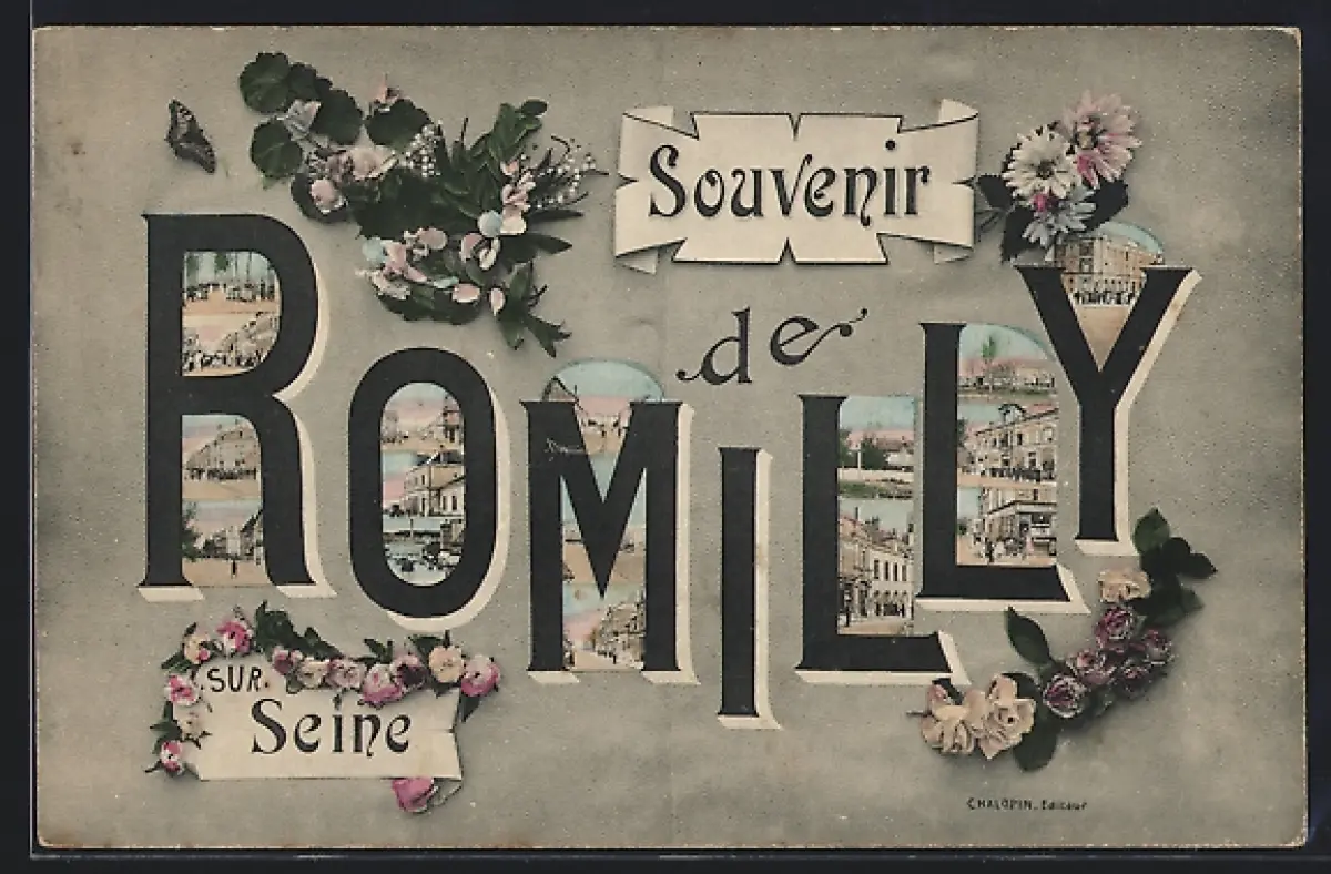 AK Romilly-sur-Seine, Souvenir avec motifs floraux et vues intégrées