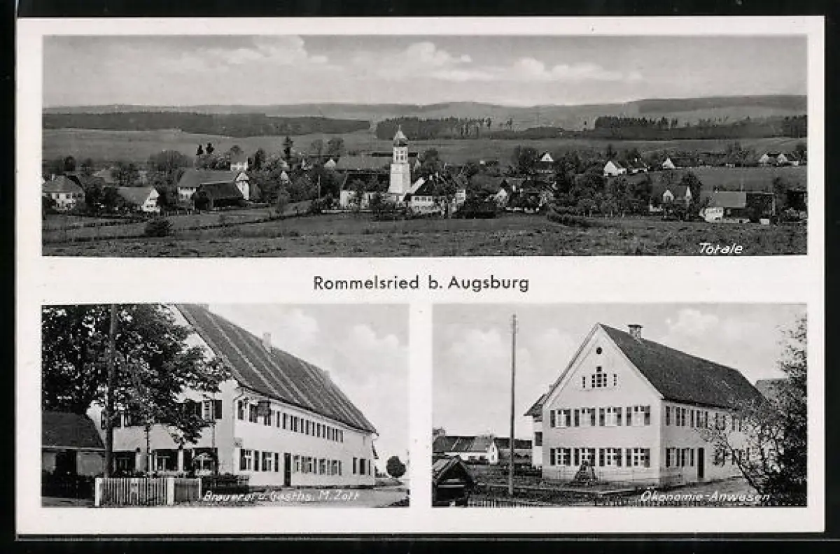 AK Rommelsried b. Augsburg, Brauerei und Gasthaus M. Zott, Ökonomie-Anwesen