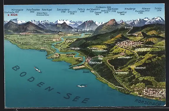 AK Rorschach, Bodensee mit anliegenden Ortschaften