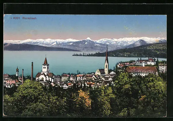 AK Rorschach, Ortsansicht mit Bodensee
